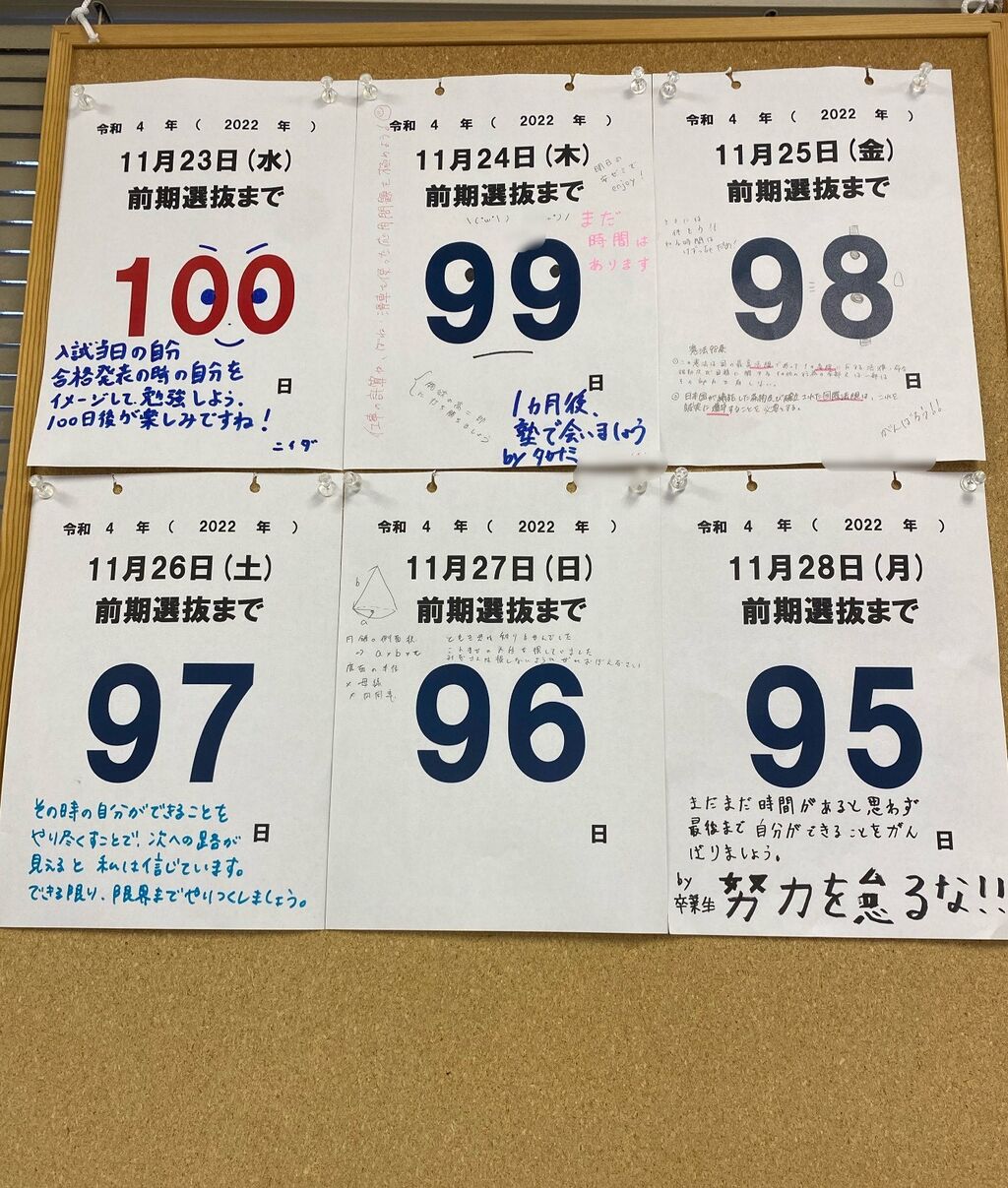 どの学年の生徒も、少しずつ「目標」をもって勉強ができるようになってきています。この後は、これまでの学習の総復習を行う冬休みに突入します。有意義に過ごせるよう、一緒に頑張っていきましょう!